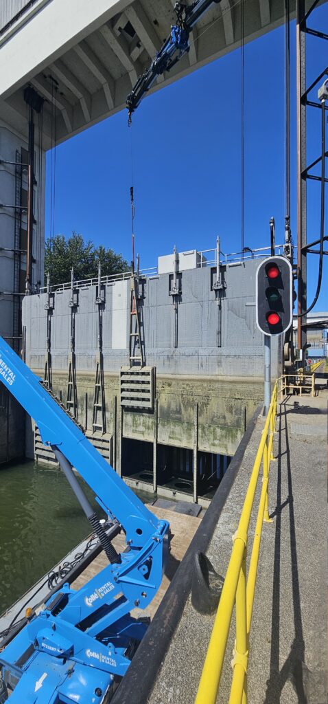 Dankzij de drie aanwezige bedieningsportalen bleef de sluis grotendeels operationeel. Door slim te plannen kon